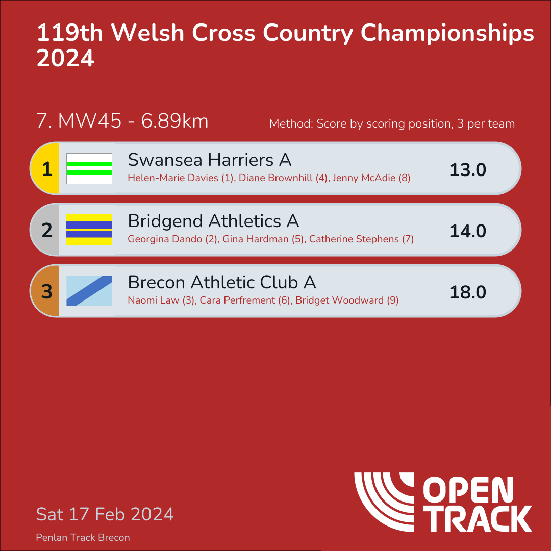 14.0 | 45: Georgina Dando (2), 69: Gina Hardman (5), 71: Catherine Stephens (7) | |