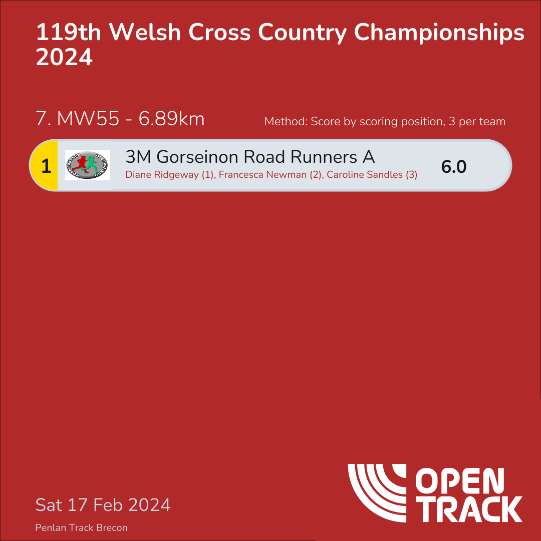 6.0 | 101: Diane Ridgeway (1), 103: Francesca Newman (2), 108: Caroline Sandles (3) |