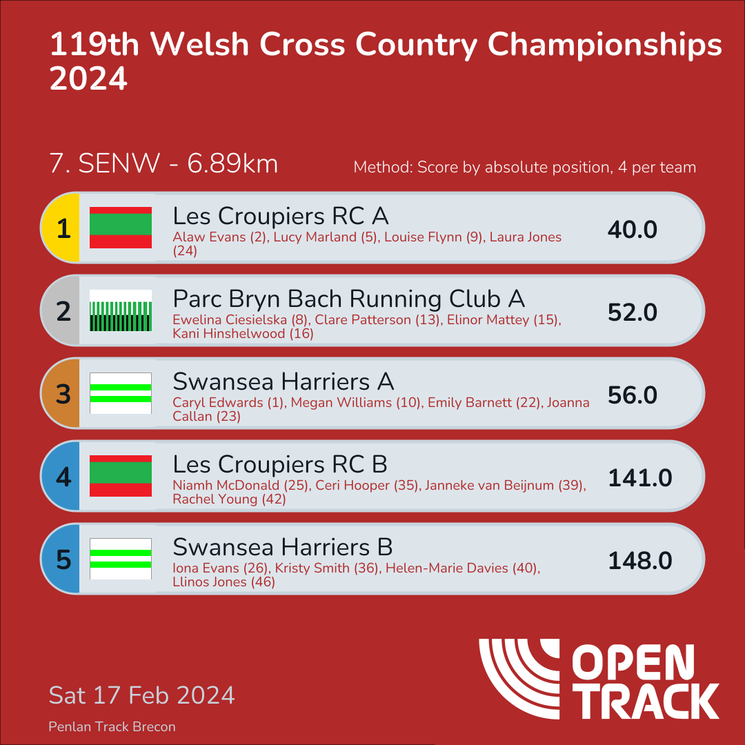 40.0 | 2: Alaw Evans (2), 5: Lucy Marland (5), 9: Louise Flynn (9), 24: Laura Jones (24) | |