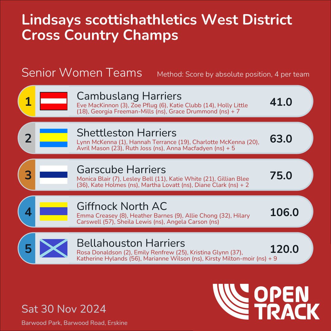 162.0 | 5: Catriona MacDonald (5), 44: Jennifer Conway (44), 47: Sophie Jenkins (47), 66: Katie Blackett (66) | |