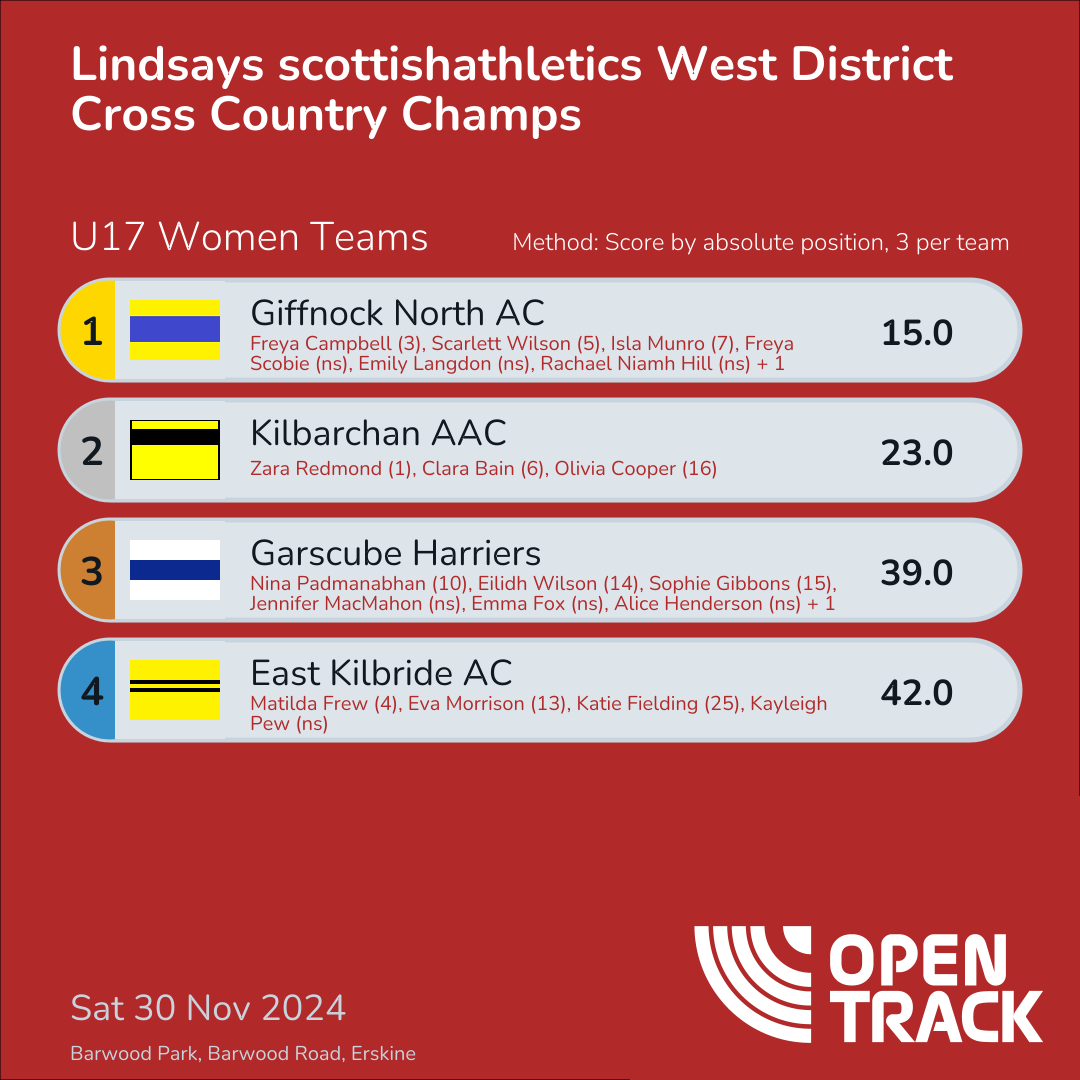 39.0 | 10: Nina Padmanabhan (10), 14: Eilidh Wilson (14), 15: Sophie Gibbons (15) | |