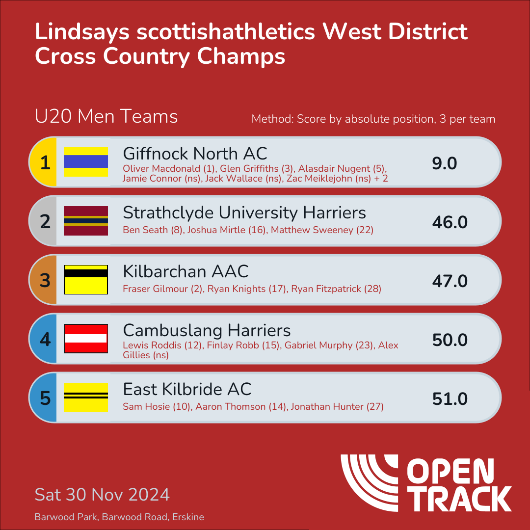 61.0 | 9: Seonaidh MacInnes (9), 20: Luke McDowell (20), 32: Cieron Hadfield (32) |