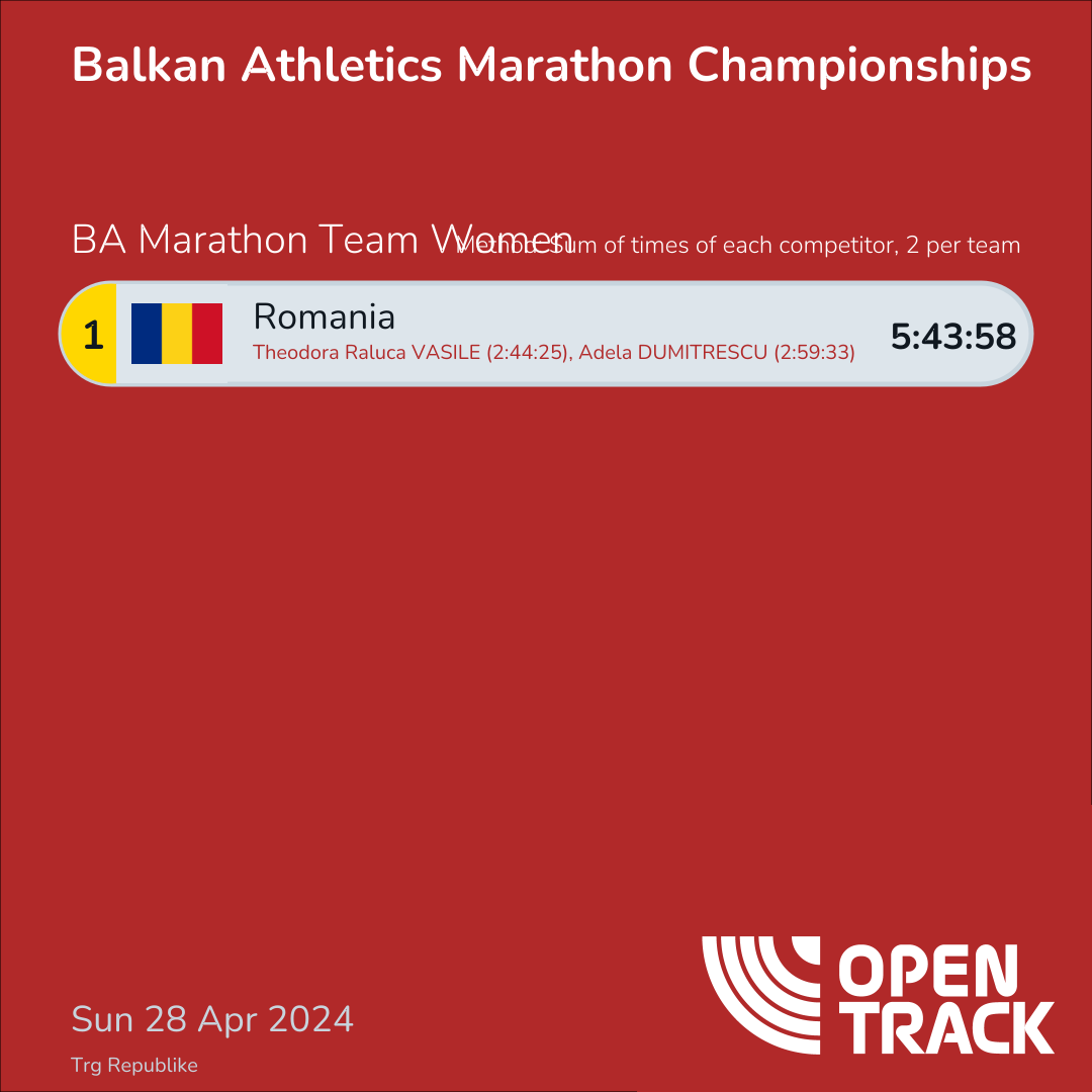5:43:58 | 2: Theodora Raluca VASILE (2:44:25), 3: Adela DUMITRESCU (2:59:33) |