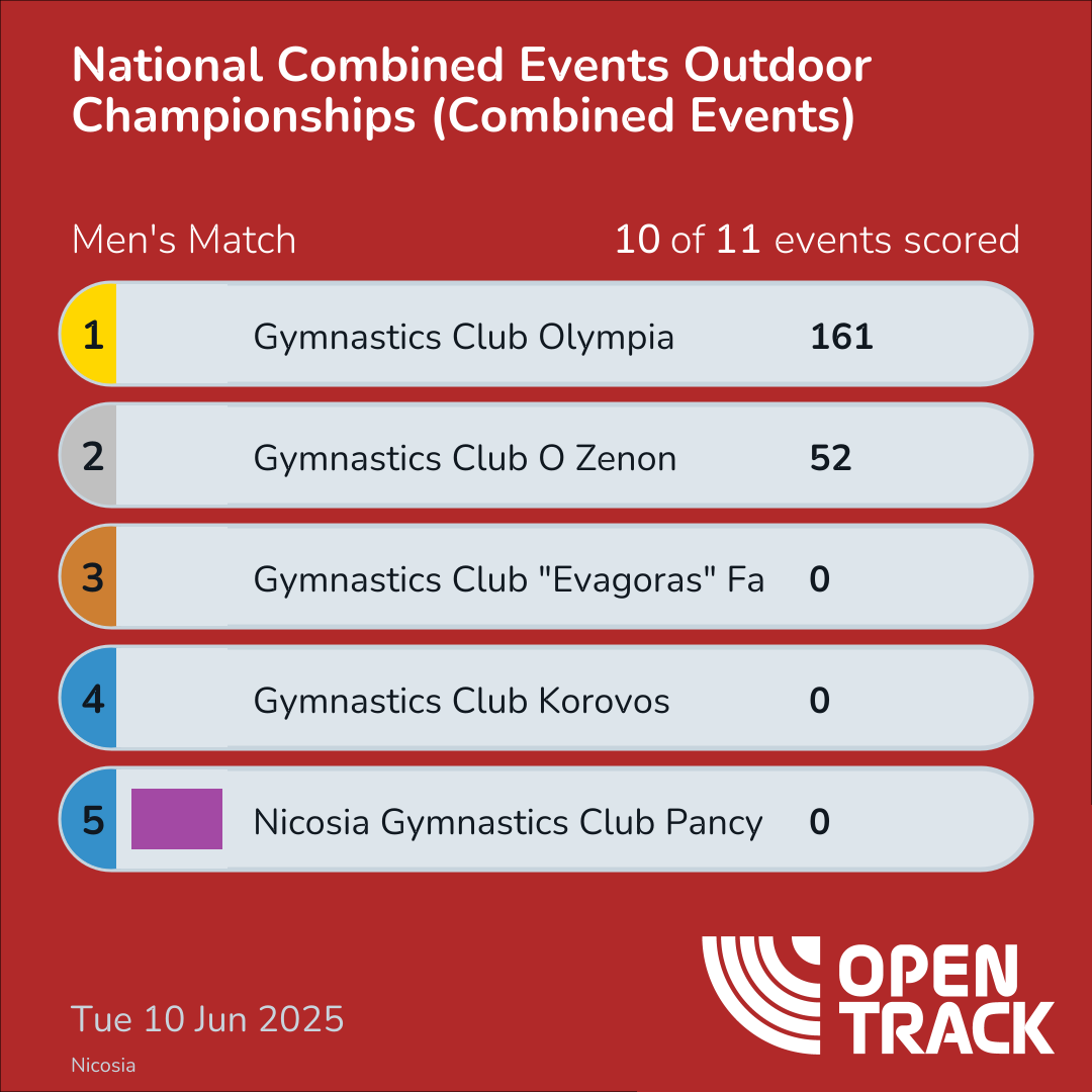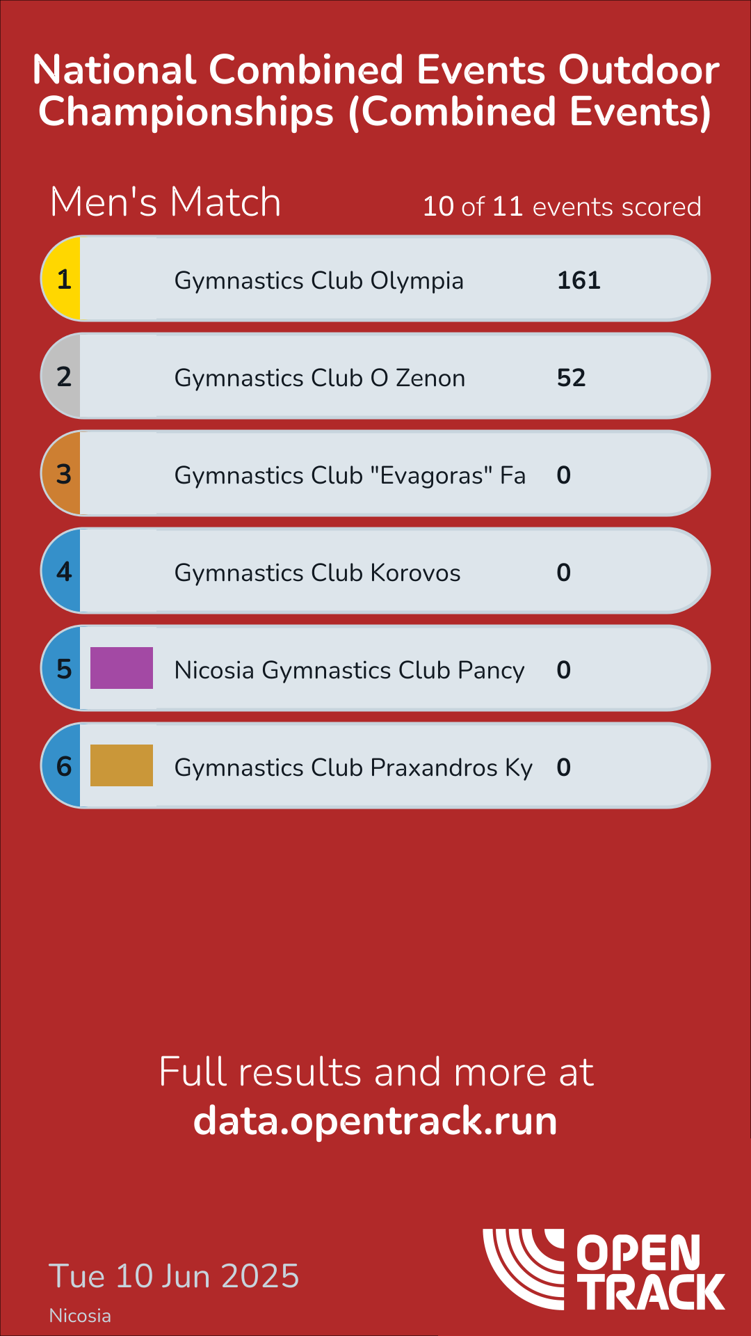 - Winner GSO: 161 (Scored 10 out of 11 events) (click to show results)| Team: |