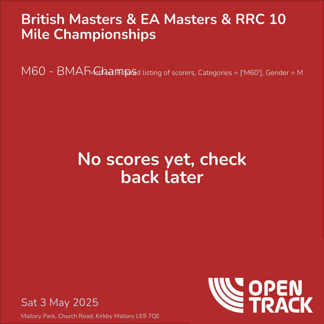 Method: Filtered listing of scorers, Categories = ['M60'], Gender = M