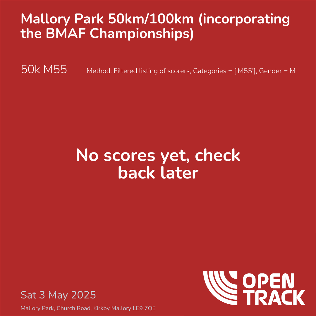 Method: Filtered listing of scorers, Categories = ['M55'], Gender = M