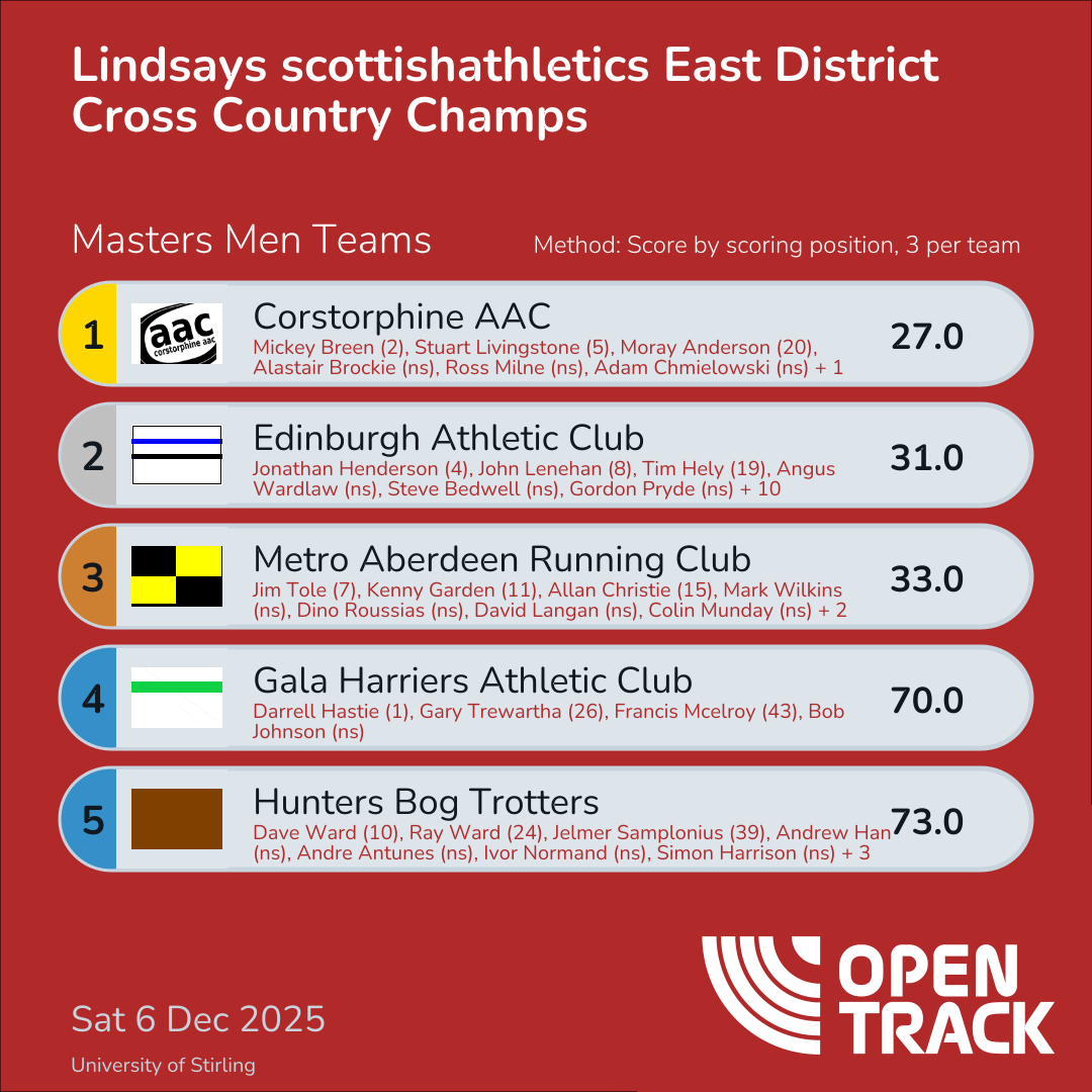 | 45 | 5 | Stuart Livingstone | M40 |