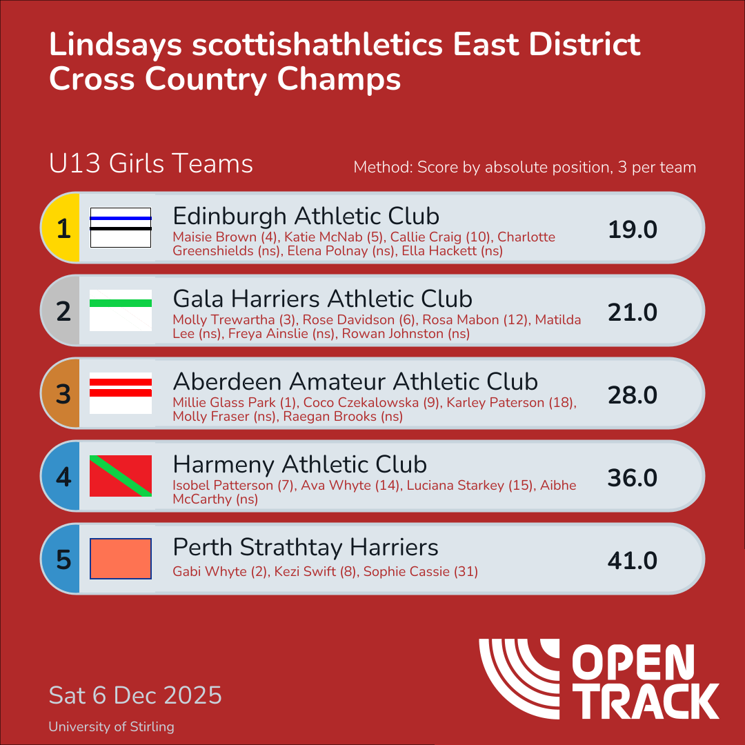 19.0 | 4: Maisie Brown (4), 5: Katie McNab (5), 10: Callie Craig (10) | |