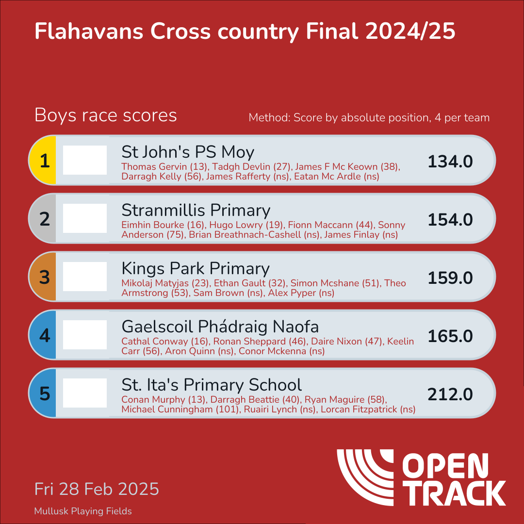 154.0 | 16: Eimhin Bourke (16), 19: Hugo Lowry (19), 44: Fionn Maccann (44), 75: Sonny Anderson (75) | |