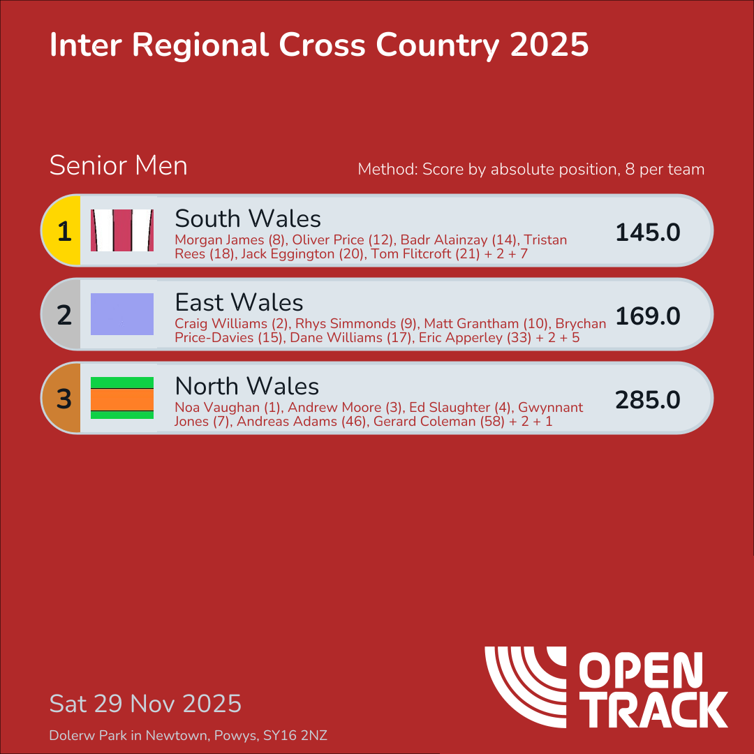 145.0 | 8: Morgan James (8), 12: Oliver Price (12), 14: Badr Alainzay (14), 18: Tristan Rees (18), 20: Jack Eggington (20), 21: Tom Flitcroft (21), 25: James Griffiths (25), 27: Mark Price (27) | |