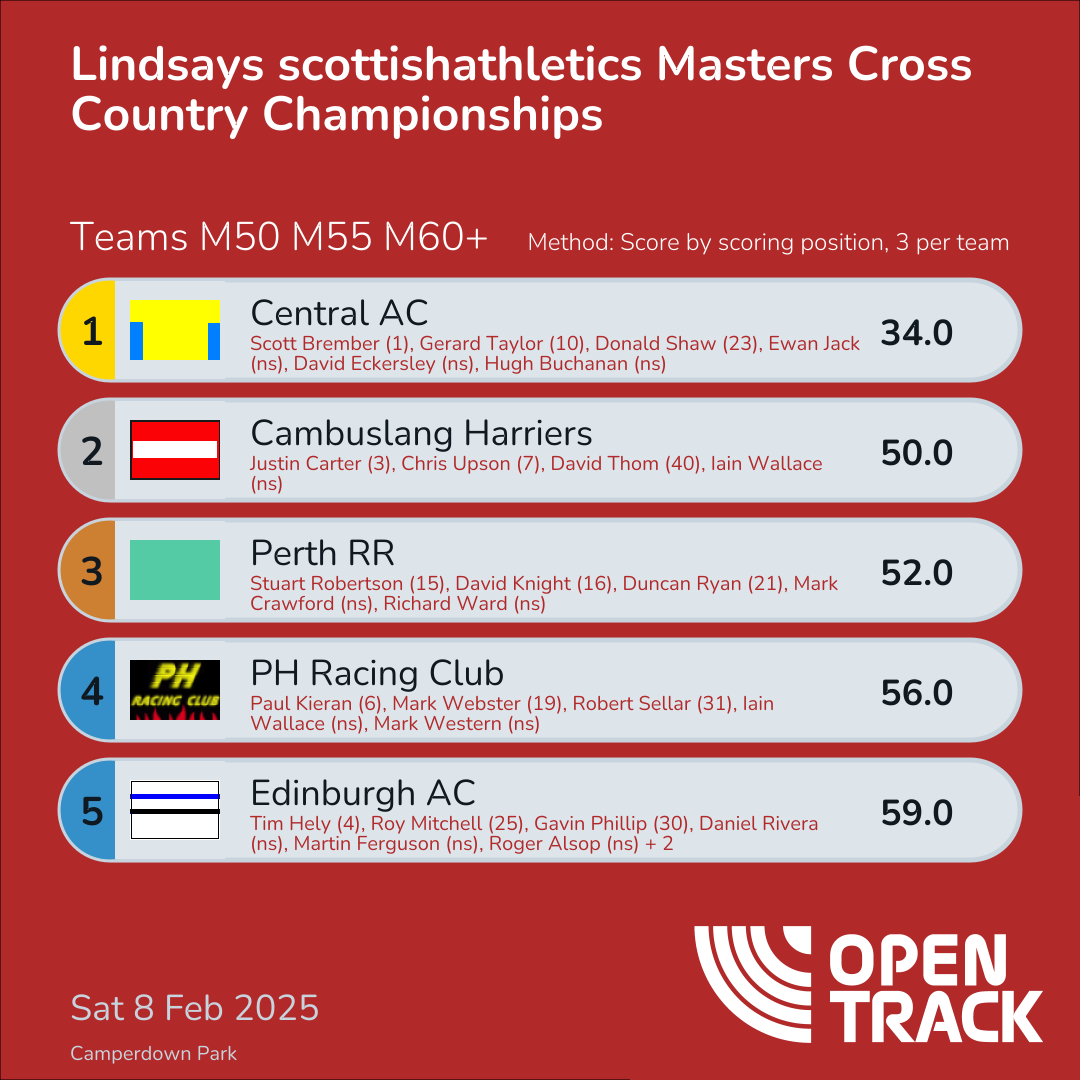56.0 | 37: Paul Kieran (6), 75: Mark Webster (19), 92: Robert Sellar (31) | |