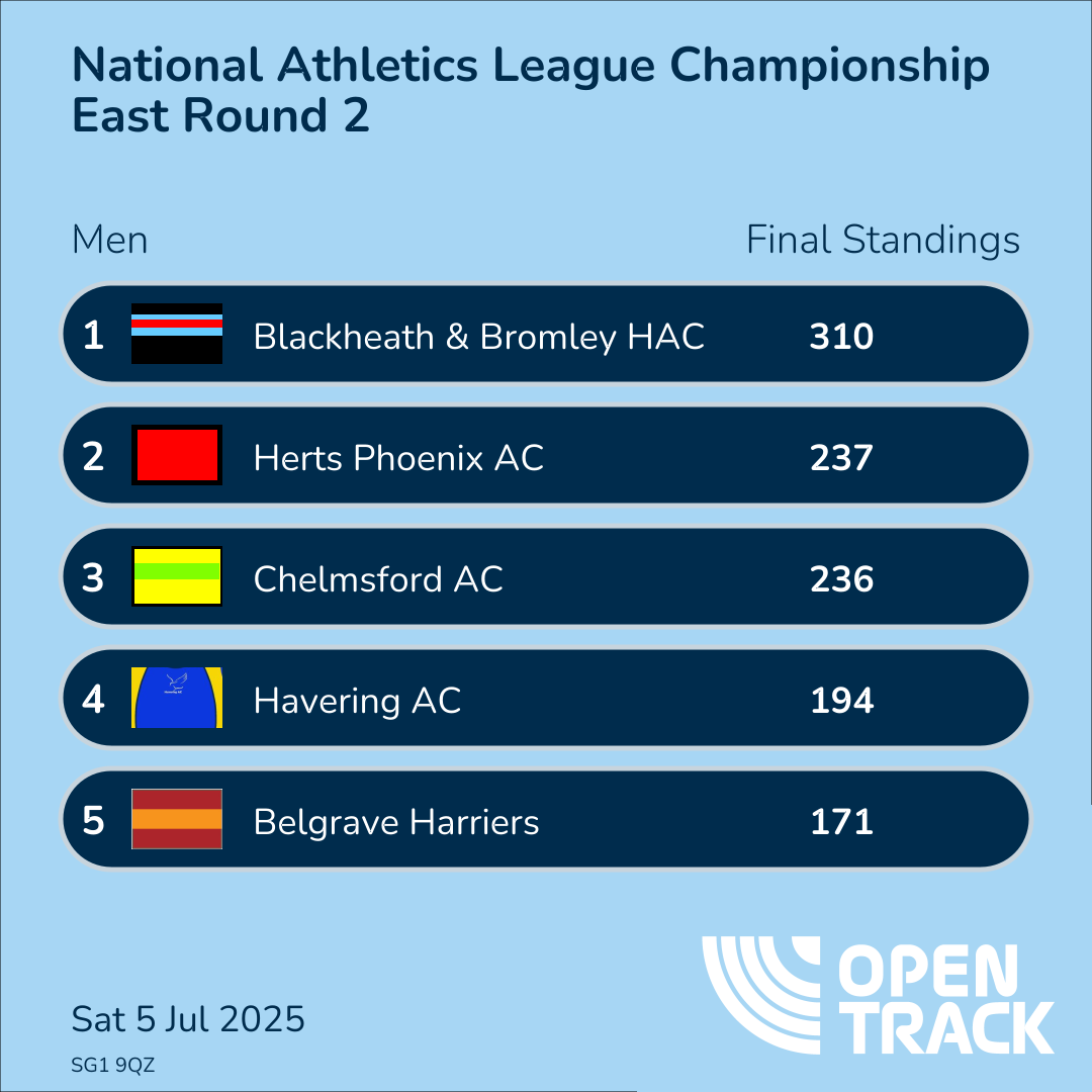 | Mixed 4x400m Relay | 22 | 18 | 14 | 12 | 10 | 0 |