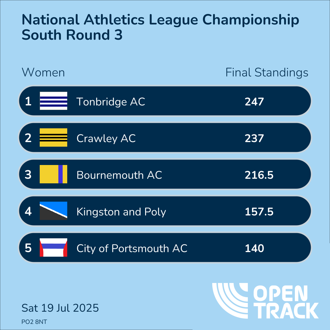 | Women's Pole Vault | 12 | 7.50 | 0 | 0 | 7.50 | 10 |