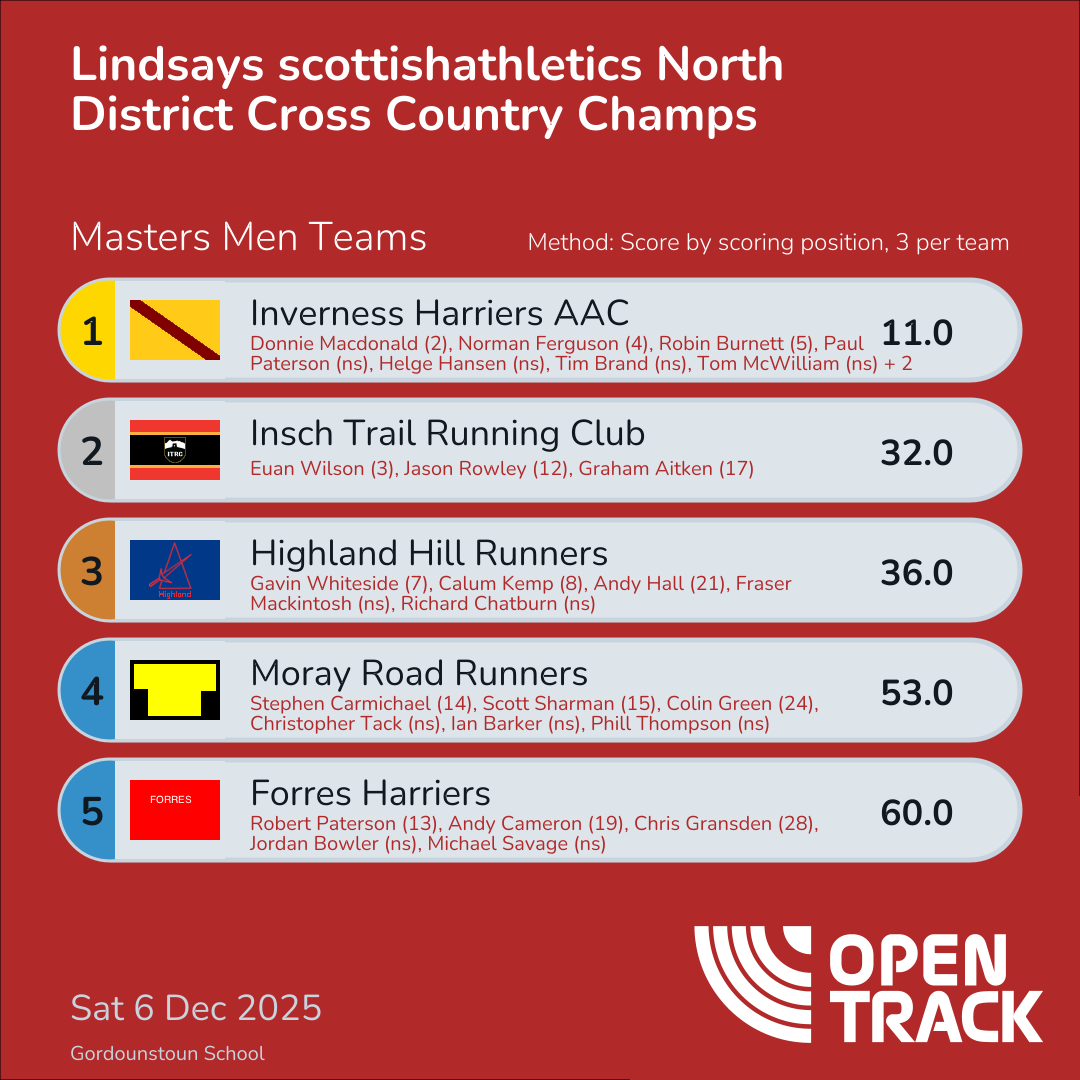11.0 | 17: Donnie Macdonald (2), 23: Norman Ferguson (4), 25: Robin Burnett (5) | |