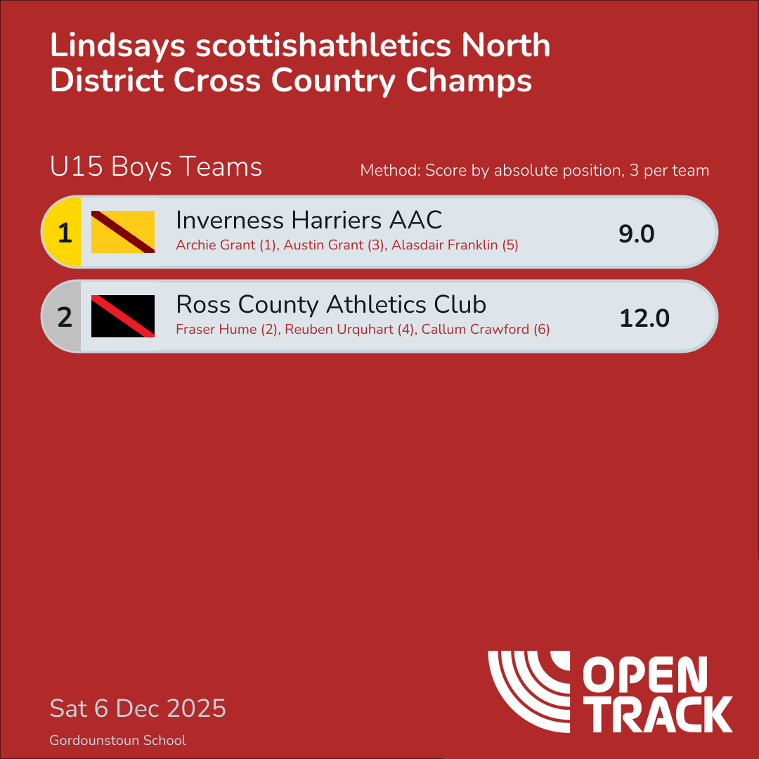 12.0 | 2: Fraser Hume (2), 4: Reuben Urquhart (4), 6: Callum Crawford (6) |