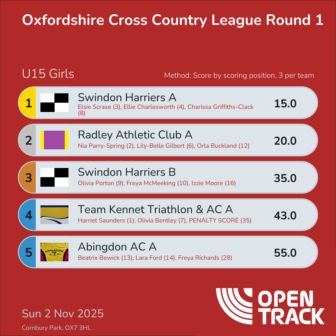 | 4 | TKTRI-A | 43.0 | 14: Harriet Saunders (1), 38: Olivia Bentley (7), 35: PENALTY SCORE (35) | |