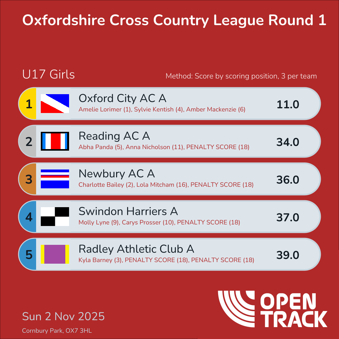 | 10 | BIC-A | 50.0 | 37: Ella Myers-Finnegan (14), 18: PENALTY SCORE (18), 18: PENALTY SCORE (18) | |
