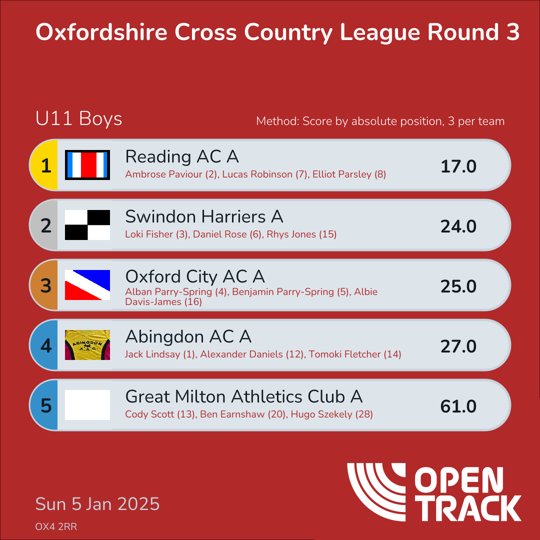 | 5 | 5 | Benjamin Parry-Spring | U11B |