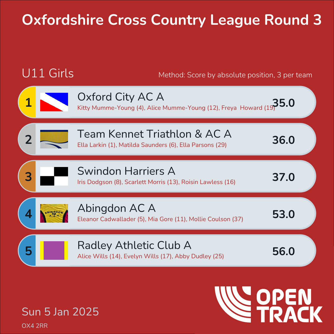 35.0 | 4: Kitty Mumme-Young (4), 12: Alice Mumme-Young (12), 19: Freya Howard (19) | |