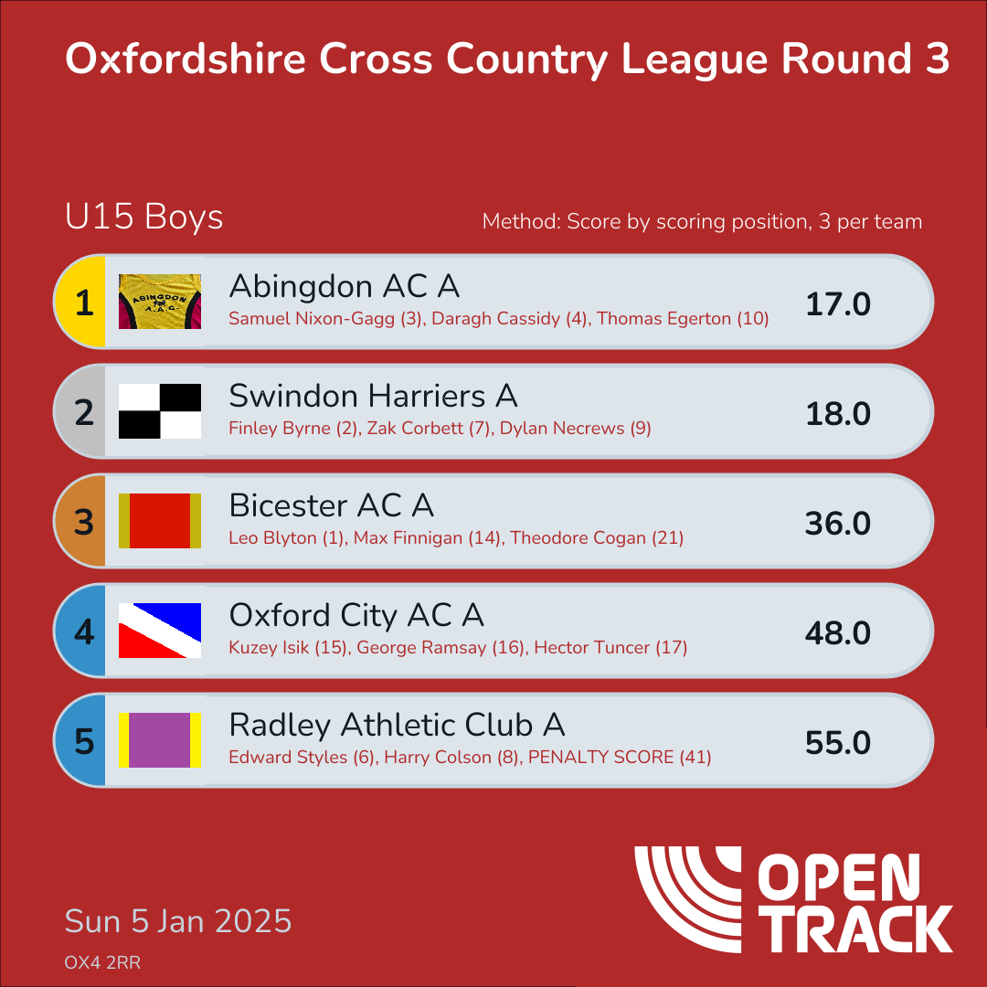 | 10 | 8 | Harry Colson | U15B |
