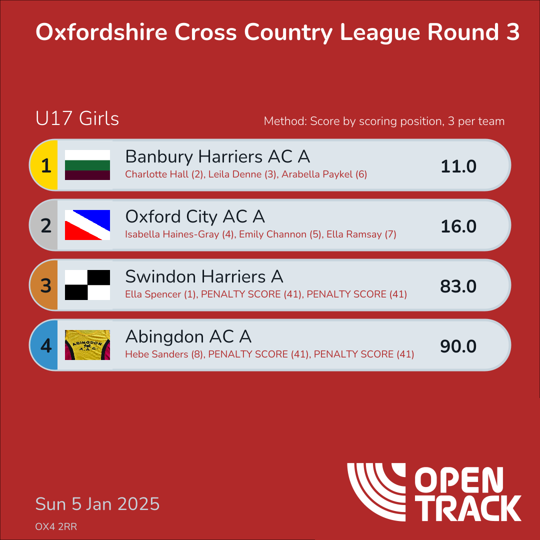 83.0 | 27: Ella Spencer (1), 41: PENALTY SCORE (41), 41: PENALTY SCORE (41) | |