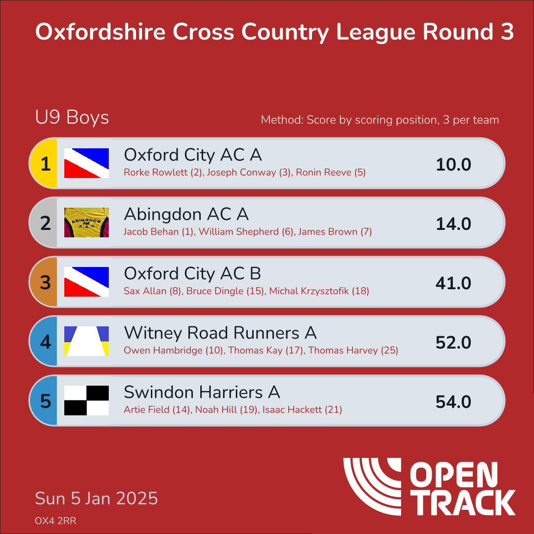 | 13 | 10 | Owen Hambridge | U9B |