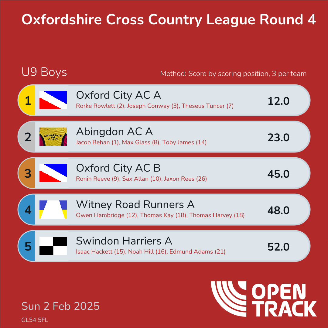 | 16 | 12 | Owen Hambridge | U9B |