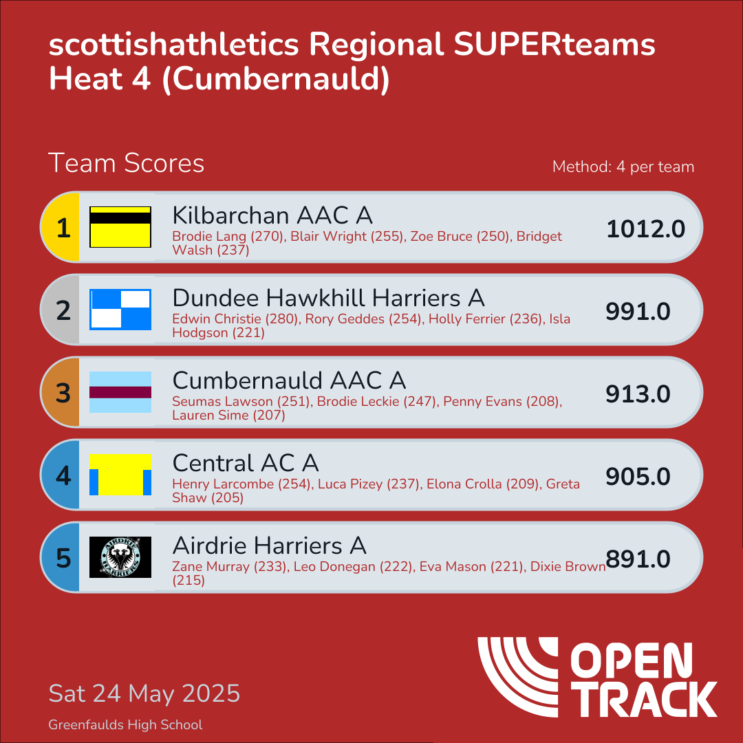 991.0 | 1: Edwin Christie (280), 6: Rory Geddes (254), 14: Holly Ferrier (236), 25: Isla Hodgson (221) | |