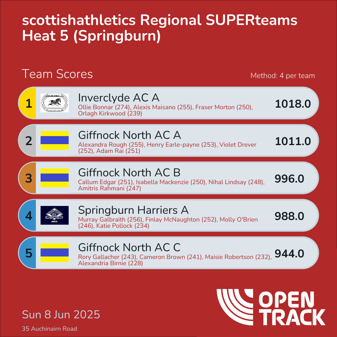 745.0 | 54: Keir Young (213), 68: Finlay Dalrymple (204), 113: Rose Warner (164), 114: Gabriella McCrum (164) | |