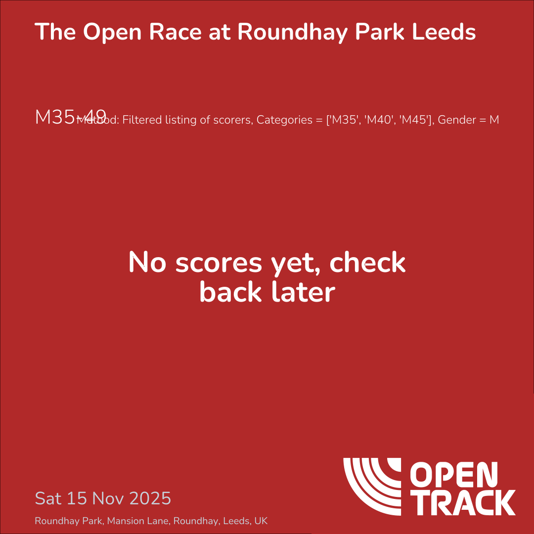Method: Filtered listing of scorers, Categories = ['M35', 'M40', 'M45'], Gender = M