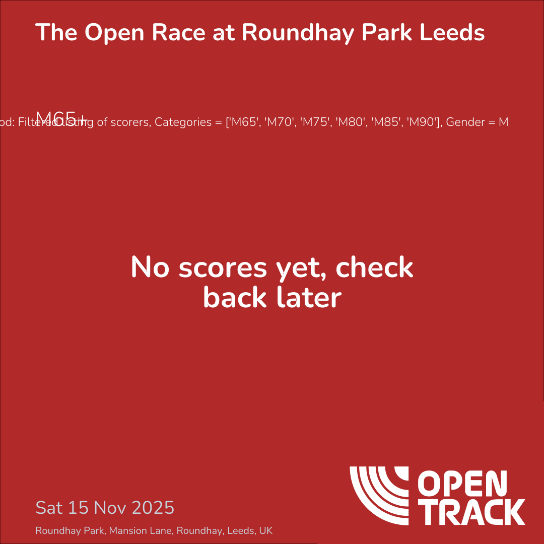 Method: Filtered listing of scorers, Categories = ['M65', 'M70', 'M75', 'M80', 'M85', 'M90'], Gender = M