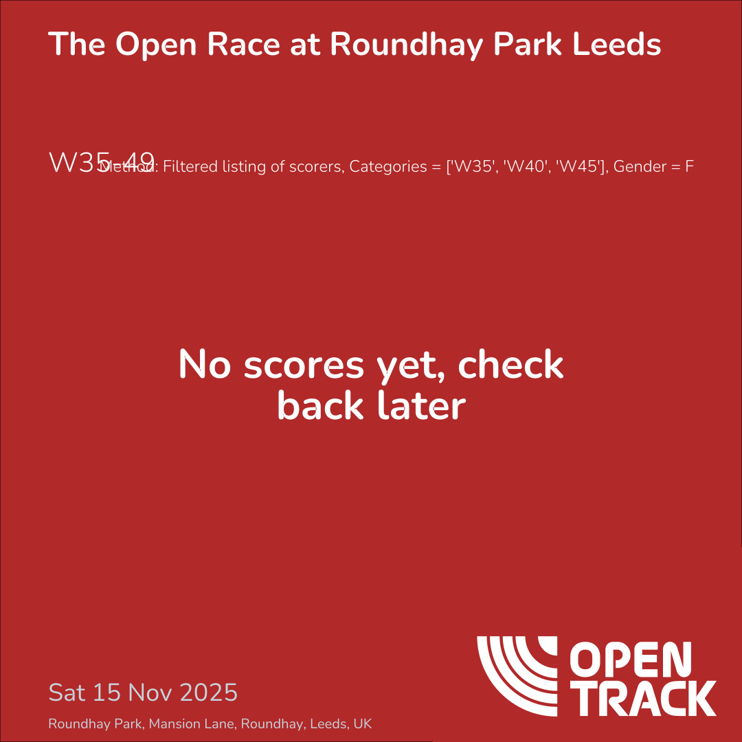 Method: Filtered listing of scorers, Categories = ['W35', 'W40', 'W45'], Gender = F