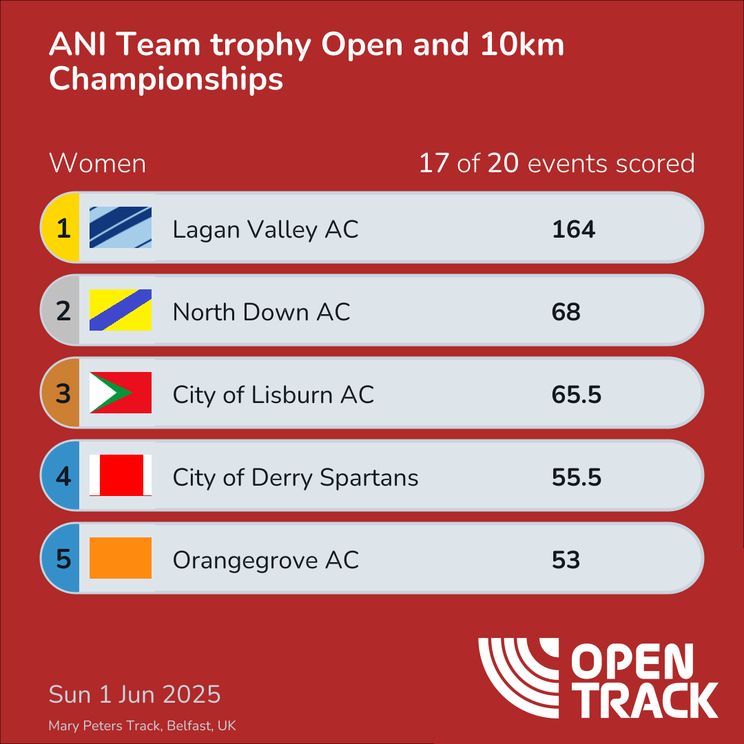 | Senior Women's 3000m | 12 | 9 | 0 | 0 | 6 | 0 | 0 |