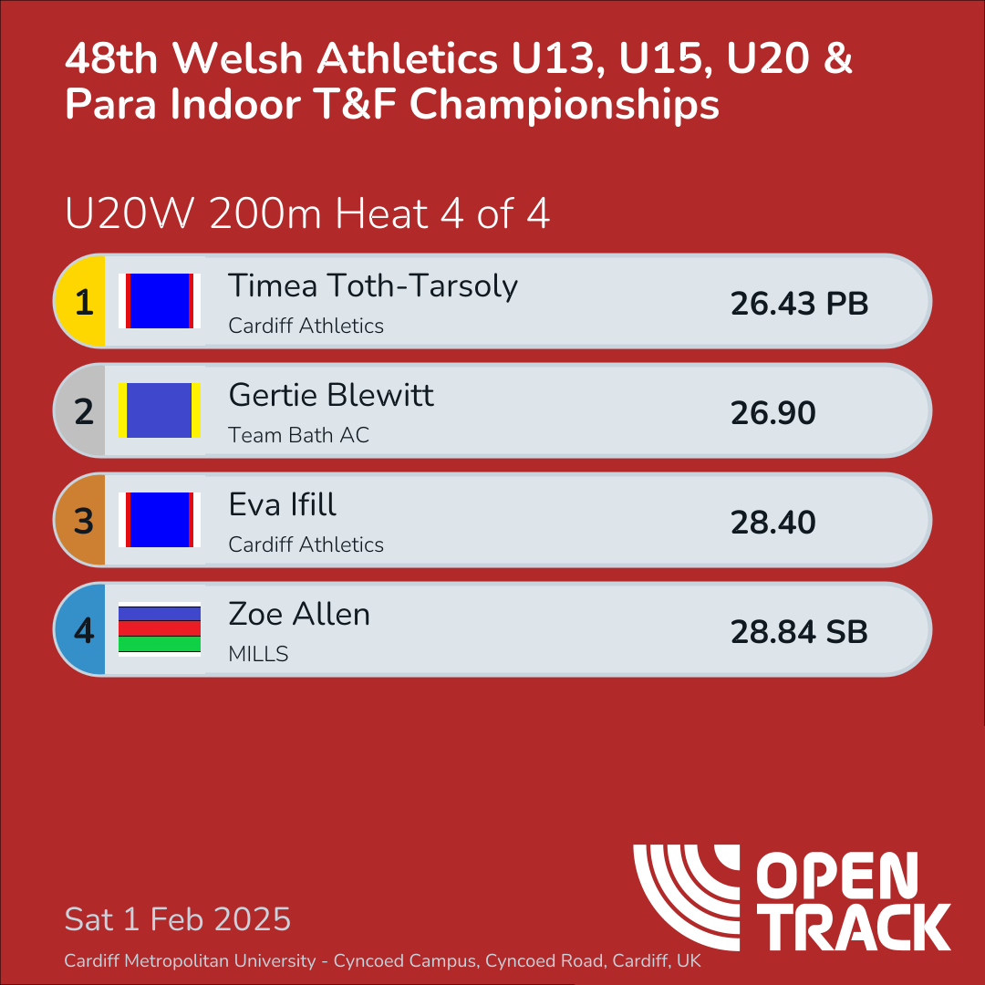 48th Welsh Athletics U13, U15, U20 & Para Indoor T&…