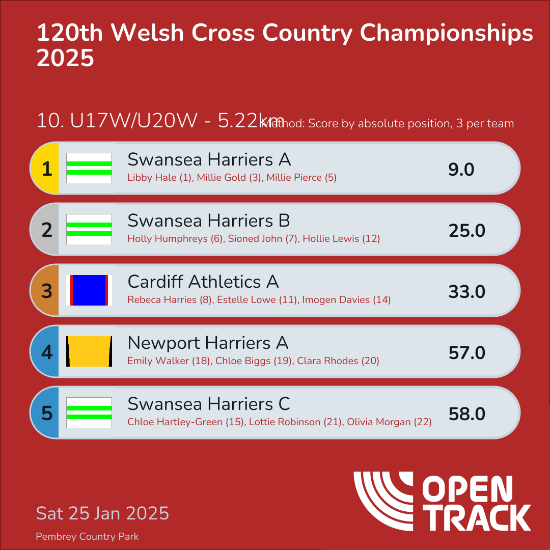 25.0 | 6: Holly Humphreys (6), 7: Sioned John (7), 12: Hollie Lewis (12) | |
