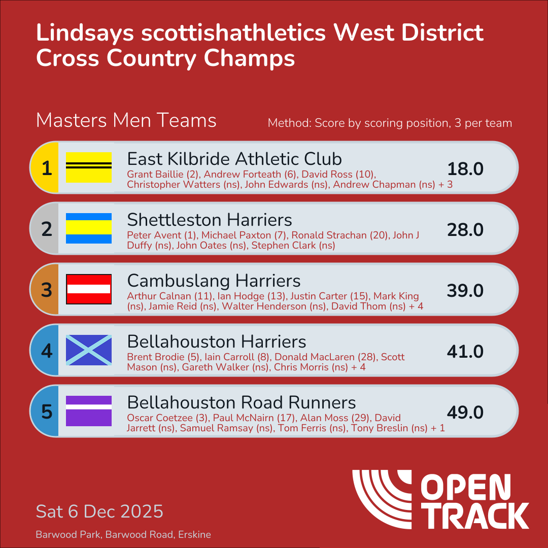 39.0 | 46: Arthur Calnan (11), 50: Ian Hodge (13), 55: Justin Carter (15) | |