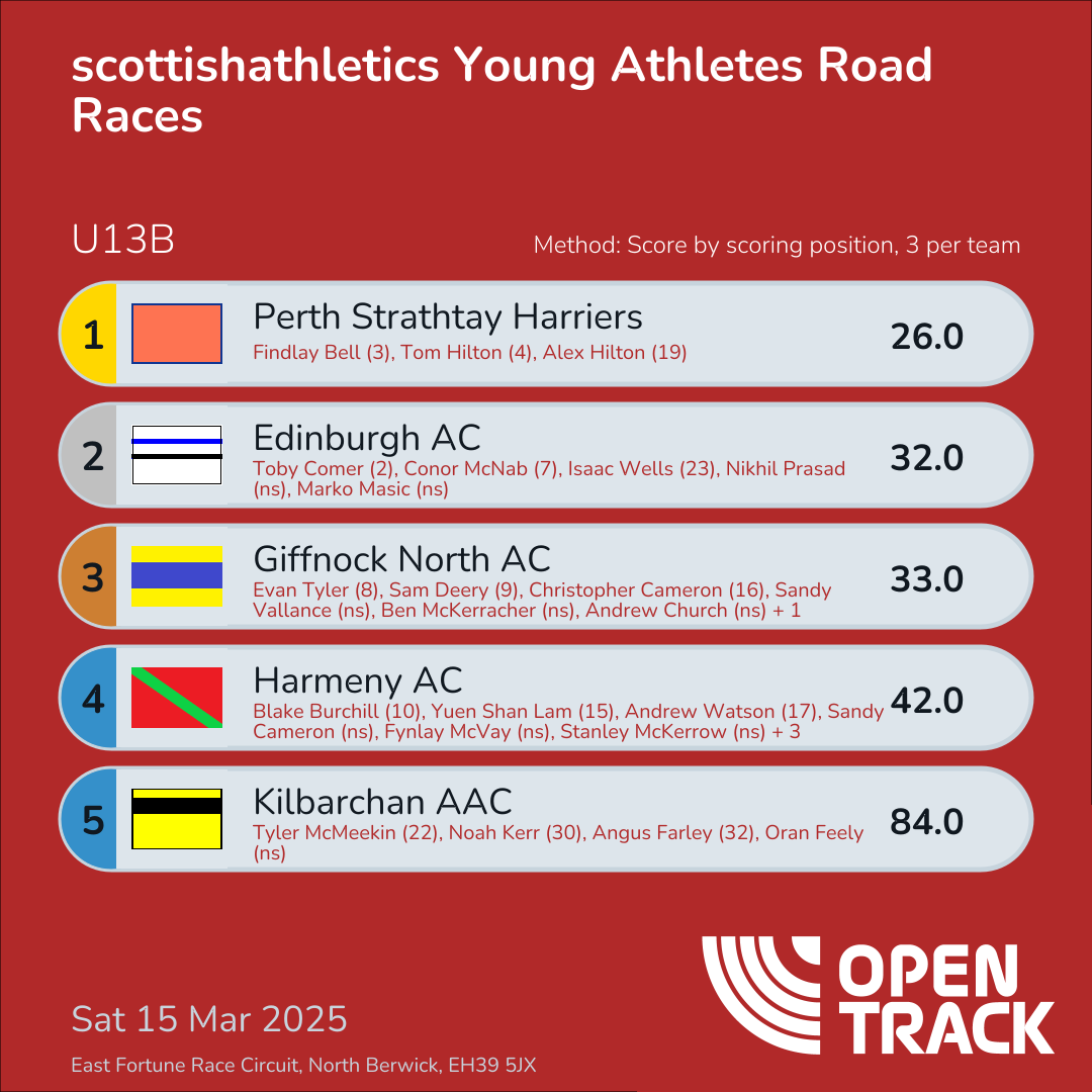 26.0 | 3: Findlay Bell (3), 4: Tom Hilton (4), 19: Alex Hilton (19) | |