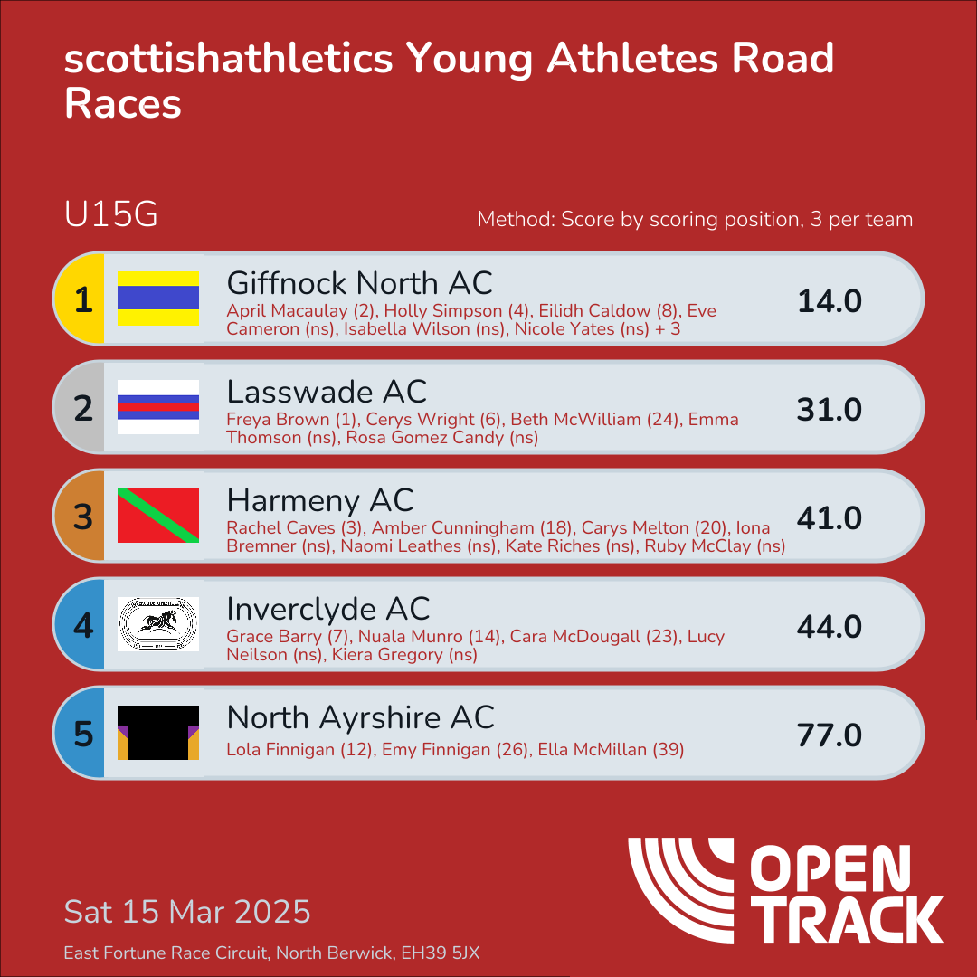 77.0 | 12: Lola Finnigan (12), 26: Emy Finnigan (26), 39: Ella McMillan (39) | |