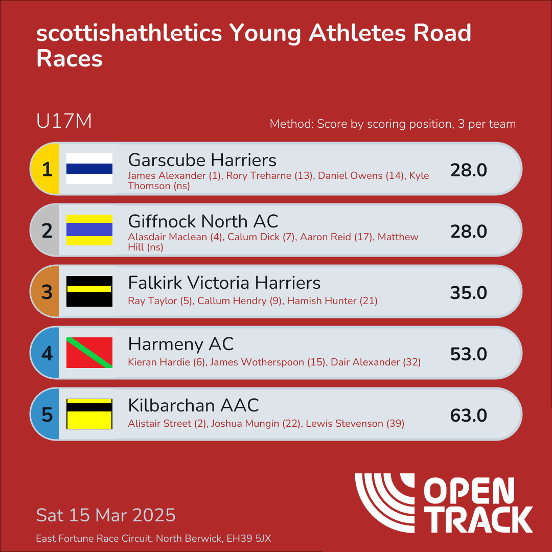 | 10 | 10 | Ruairidh Stirling | U17M |