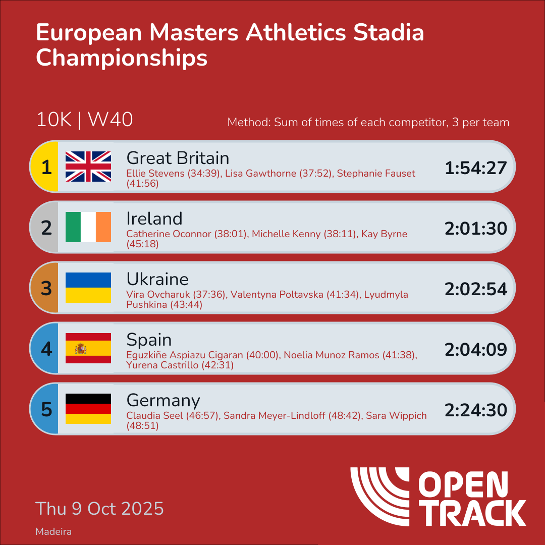 1:54:27 | 1: Ellie Stevens (34:39), 5: Lisa Gawthorne (37:52), 24: Stephanie Fauset (41:56) | |