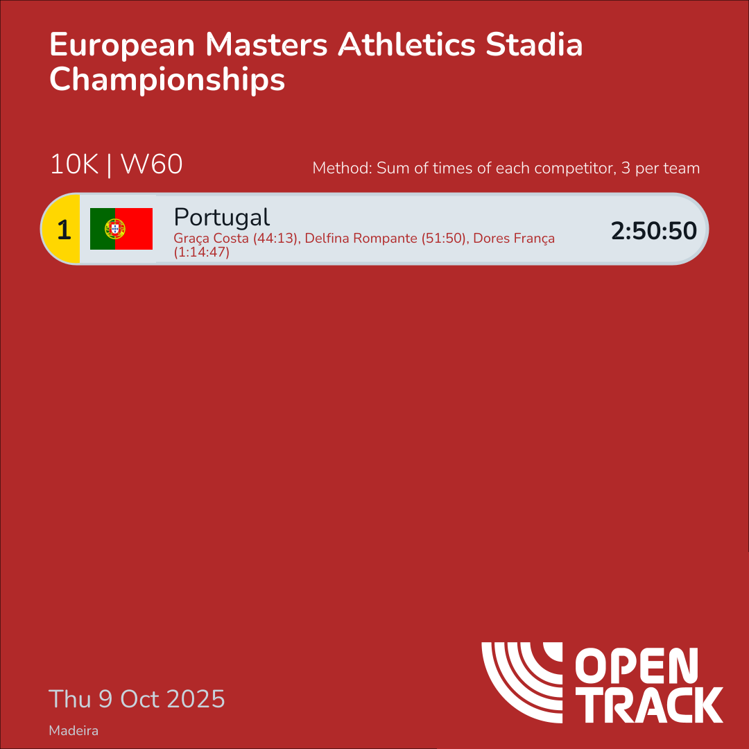 2:50:50 | 35: Graça Costa (44:13), 91: Delfina Rompante (51:50), 123: Dores França (1:14:47) |
