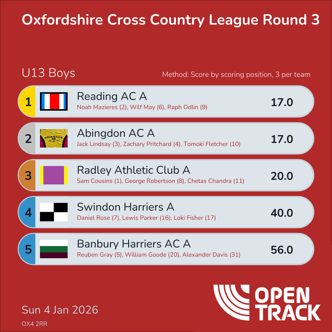 | 31 | 25 | Tomek Vockings | U13B |