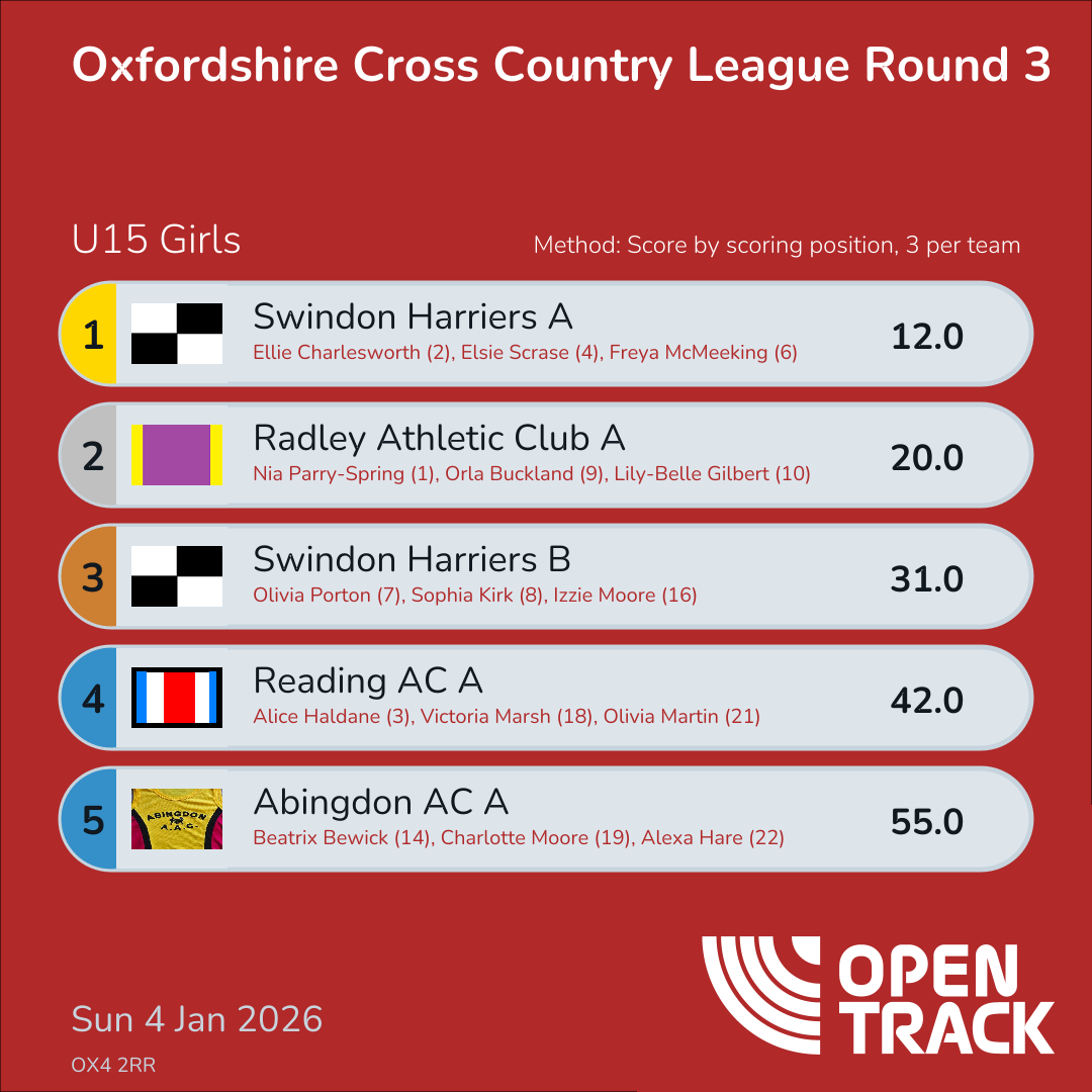 12.0 | 21: Ellie Charlesworth (2), 25: Elsie Scrase (4), 31: Freya McMeeking (6) | |