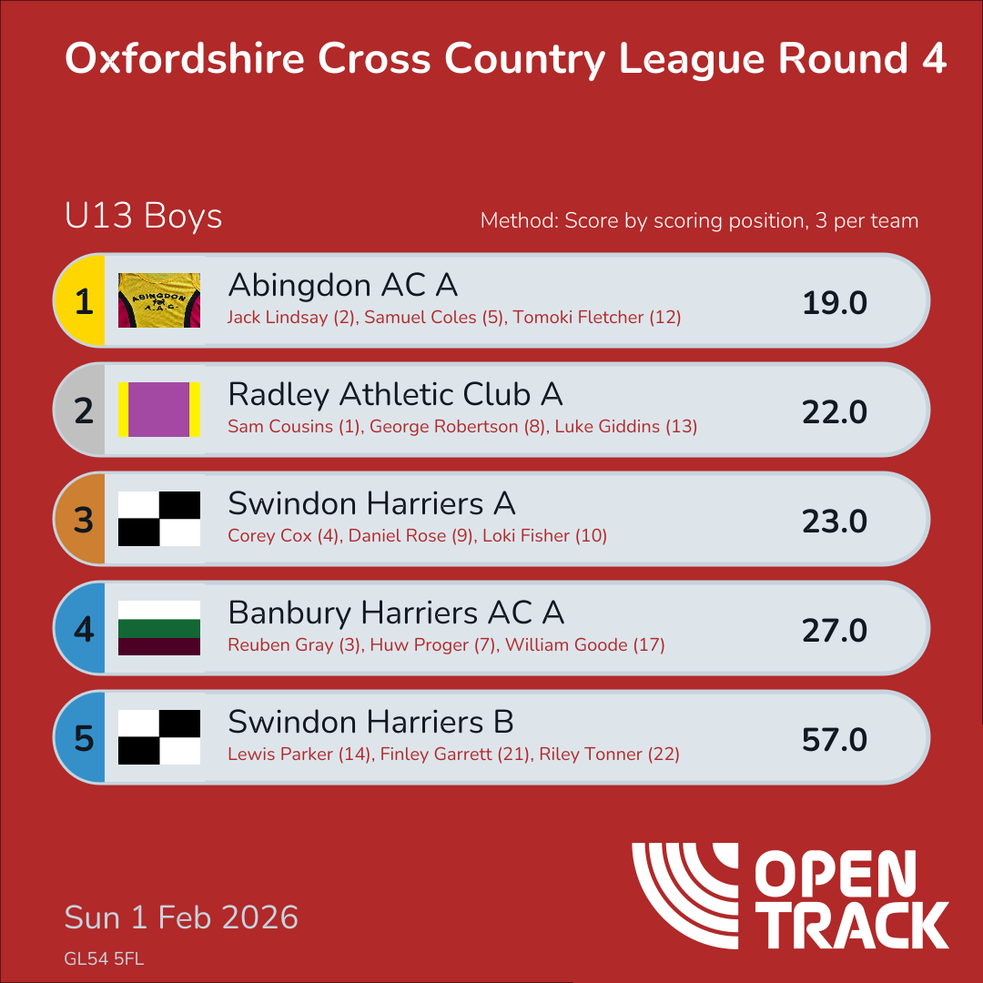 | 5 | 5 | Samuel Coles | U13B |