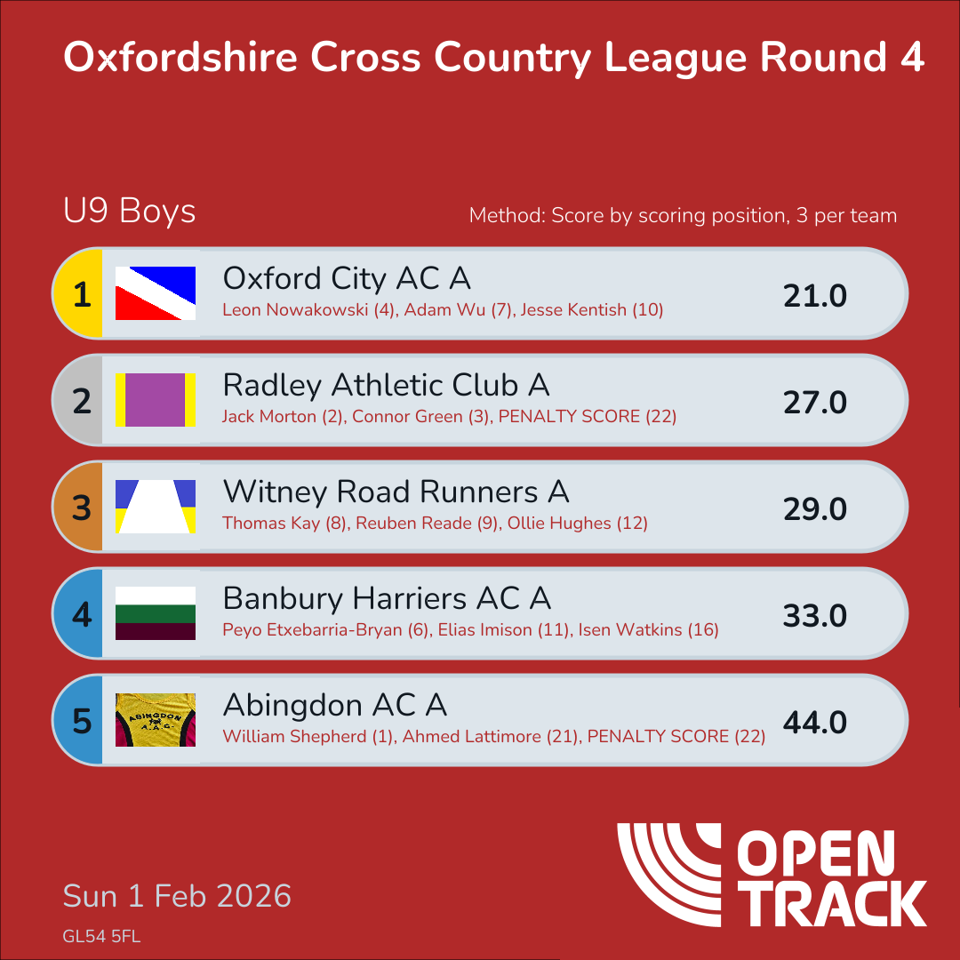 | 11 | BIC-A | 63.0 | 30: Eisa Tyrrell (19), 22: PENALTY SCORE (22), 22: PENALTY SCORE (22) |