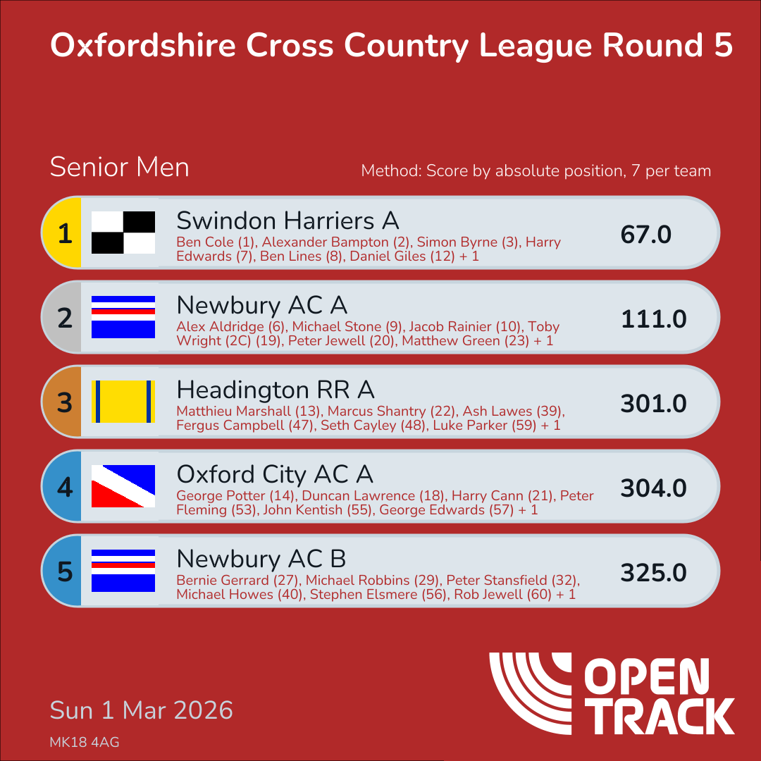 | 9 | THAMR-A | 494.0 | 54: Dominic Tucker (54), 61: Charlie Pughe (61), 63: Tom Crowley (63), 70: Adam Swanson (70), 74: Leigh Schvartz (74), 75: James Hurford (75), 97: Duncan Green (97) | |