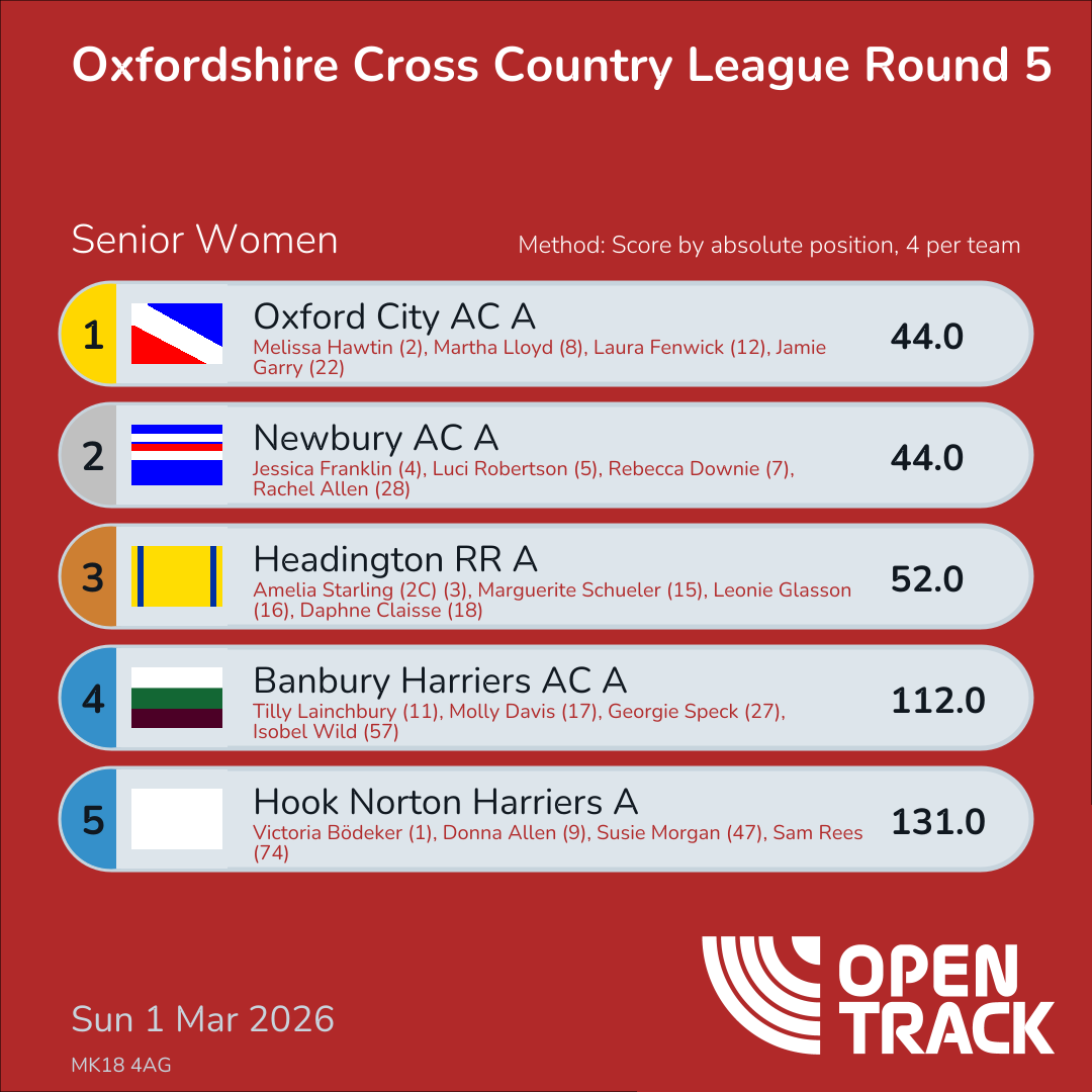 | 11 | OXTRI-A | 178.0 | 29: Alice Harper (29), 35: Hannah Grainger Clemson (35), 55: Hannah Gibbs (55), 59: Mary McKnight (59) | |