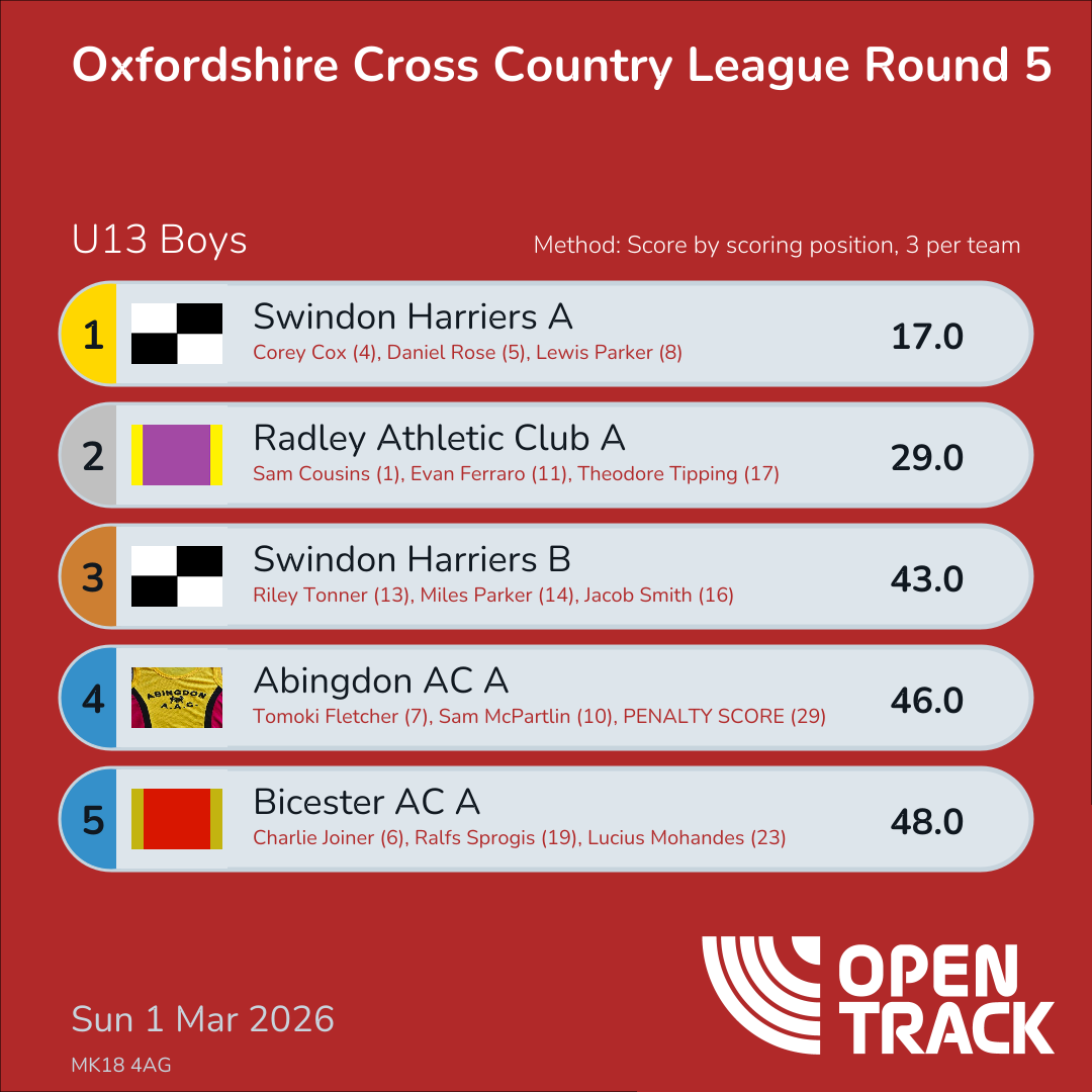 | 8 | 8 | Lewis Parker | U13B |