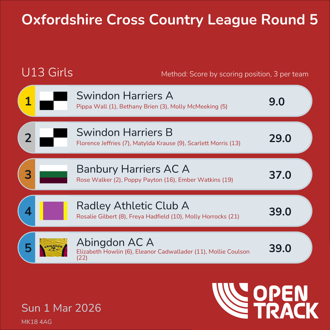 | 32 | 11 | Eleanor Cadwallader | U13G |