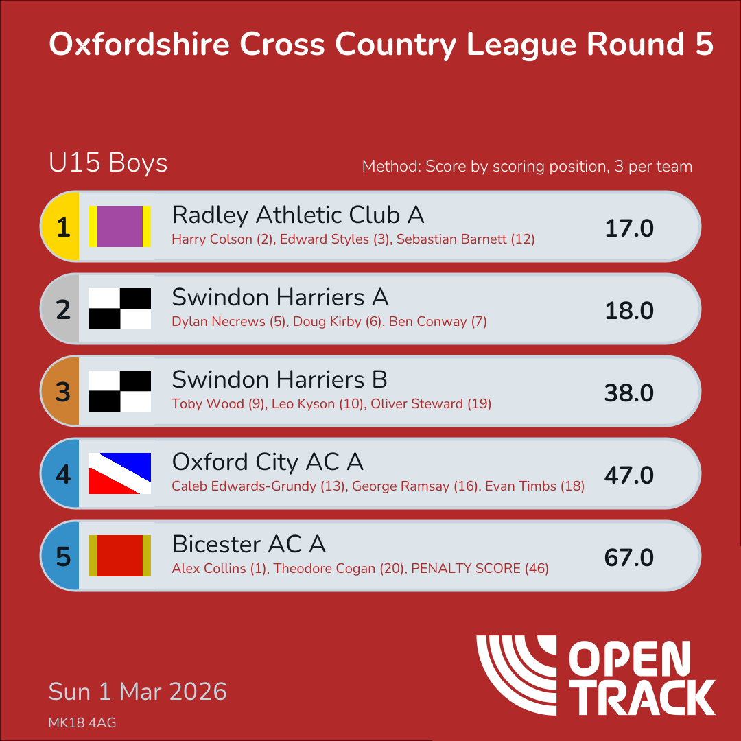 | 2 | 2 | Harry Colson | U15B |